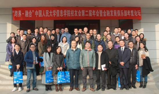 2016年12月18日,“跨界·融合”中国人民大学校友会葡京娱乐场官方网站 分会2016年会暨信息金融发展俱乐部年度论坛在逸夫会议中心顺利召开。中国人民大学教务处处长龙永红教授,葡京娱乐场官方网站 院长文继荣教授,葡京娱乐场官方网站 前党委书记林颐老师,党委副书记张国富等出席会议;葡京娱乐场官方网站 院友王正绪、王承军、陈利强、罗伟东、韩松、韩欢宁、乔薇、刘露、魏雯雯、姜晓丽等近80位历届校友参加了此次论坛。