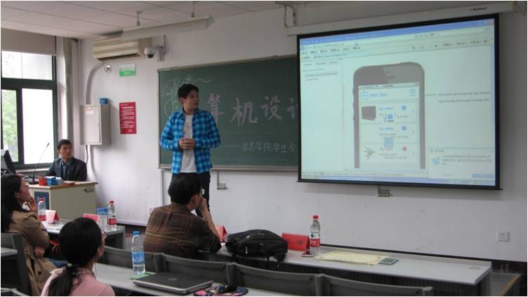 3月26日下午两点, 2014年中国人民大学多媒体设计大赛宣讲会于求是楼0324正式举行。本次宣讲会邀请到参与全国大赛组织的经济信息管理系教授杨小平老师、信息基础教研室主任尤晓东老师,以及上届全国大赛获奖选手的冯强、朱映秋同学给同学们做大赛介绍及相关经验交流。