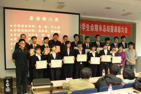 颁奖环节中,分团委宣传部、宣传部、办公室获团体贡献奖,分团委组织部、学习部、外联部获开拓创新奖、文化部、体育部、实践部卓越组织奖。另外,大会上还向学生会干部颁发了优秀组织能力奖、杰出贡献奖等奖项。新生干事们中共有十八名优秀新人获得最佳新人奖。最后,文化部部长常铭珊获得网络最具人气部长奖和现场最具人气部长奖。