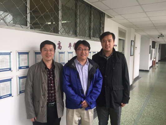 图说:于超校友(右)与文继荣院长(中)、张国富副书记(左)合影留念