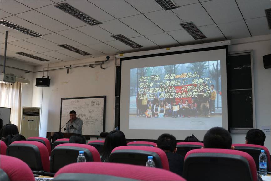在监票人第三十六届分团委副书记刘令宇宣读完评分细则后,各班代表按照抽签决定的顺序依次登台,通过PPT、视频等多种形式,分别从“党团建设”、“班级学习”、“班级活动”、“班级特色”、“优秀个人”等多个方面展示了丰富的课内外活动,全面表现了班级独特的精神风貌和班级建设成果。其中,作为2011级1班的代表、同时也是毕业班班长的王吉磊师兄首先道出即将毕业之际的同学们对班级的感恩和热爱。该班用精心制作的幻灯片向我们展示了一个团结,奋进的班级形象,更在展示最后以师兄师姐的身份倡导在座同学“做一个厚重的人,想想能为这个世界做点什么”,为低年级的同学们做出了榜样。12级6班则展示了丰富多彩的班级活动和班级文化建设,另有个性十足的班徽和班级文化衫,让大家赞叹不已。13级3班还播放了一段去年同学们一起录制的班级视频,那些可爱而又真挚的笑容,真诚而又美好的祝愿,感染着全场的同时赢得支持。
