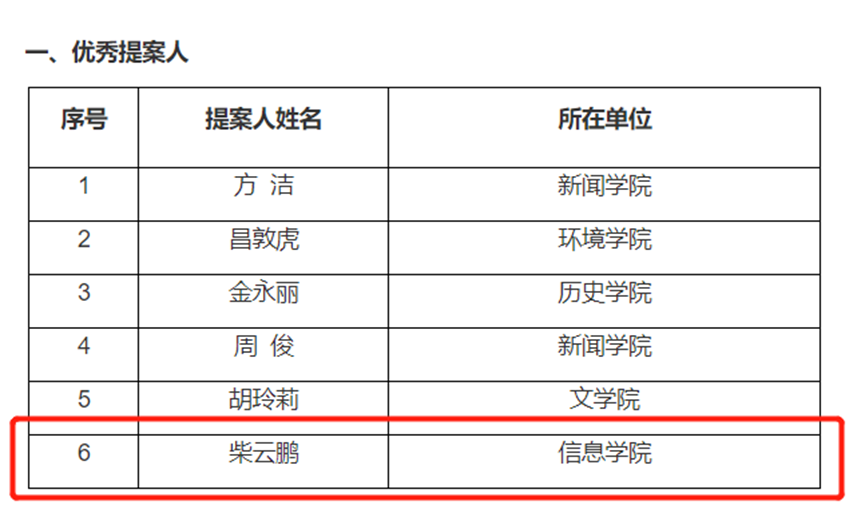 柴云鹏教授作为中国人民大学第七届教职工代表大会代表,2021年度充分调研师生意向,共撰写10份提案,并积极与有关职能部门协商,解决其中9项师生重点关注问题,充分履行了教代会代表职责。