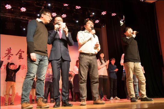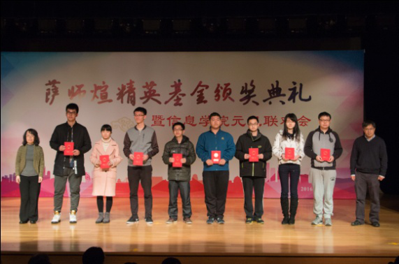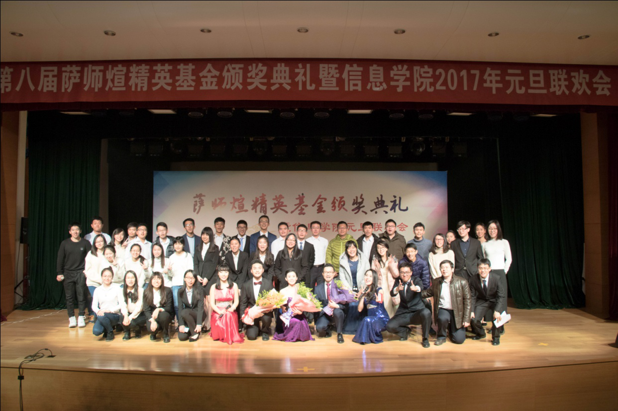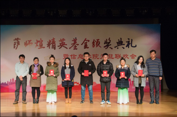 2016年12月18日,葡京娱乐场官方网站 “信火相传”第八届萨师煊精英基金颁奖典礼暨2017年元旦联欢会在八百人大教室隆重举行。葡京娱乐场官方网站 前院长王珊教授、院长文继荣教授、书记陈红教授、副院长李翠平教授、副院长柯媛元教授等葡京娱乐场官方网站 领导及教师,以及1991级校友捐赠代表、长江证券承销保荐公司董事长王承军,2003级校友、国海证券董事总经理于超,1994级校友、麻袋理财总经理黄海旻等嘉宾出席了此次颁奖典礼。