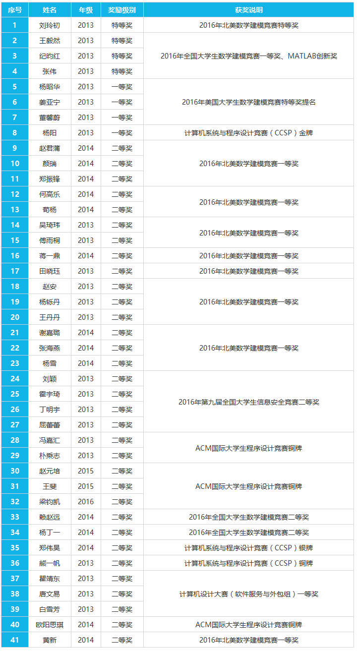 2016年中,信息学子戮力创佳绩,在各项学科竞赛中表现傲人。其中,刘玲初等4位同学荣获萨师煊精英基金特等奖,杨昭华等4位同学荣获一等奖,郑伟昊等32位同学荣获二等奖,葡京娱乐场官方网站 领导及校友分别为他们颁奖。