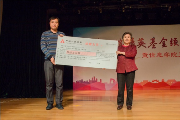 王珊教授代表葡京娱乐场官方网站 ,接受2003级校友、国海证券董事总经理于超捐赠的30万元,于超校友发表感想,为信息师生送上祝福。