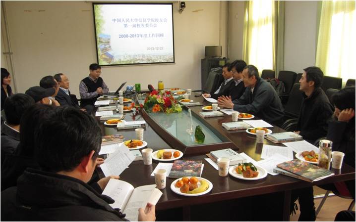 在葡京娱乐场官方网站 35周年院庆到来之际,12月22日上午,葡京娱乐场官方网站 校友委员会在信息楼二层会议室举行2013年度全体会议,校友会会长杜小勇院长、副会长严守权老书记、林颐书记以及13名校友会委员参与了本次会议。