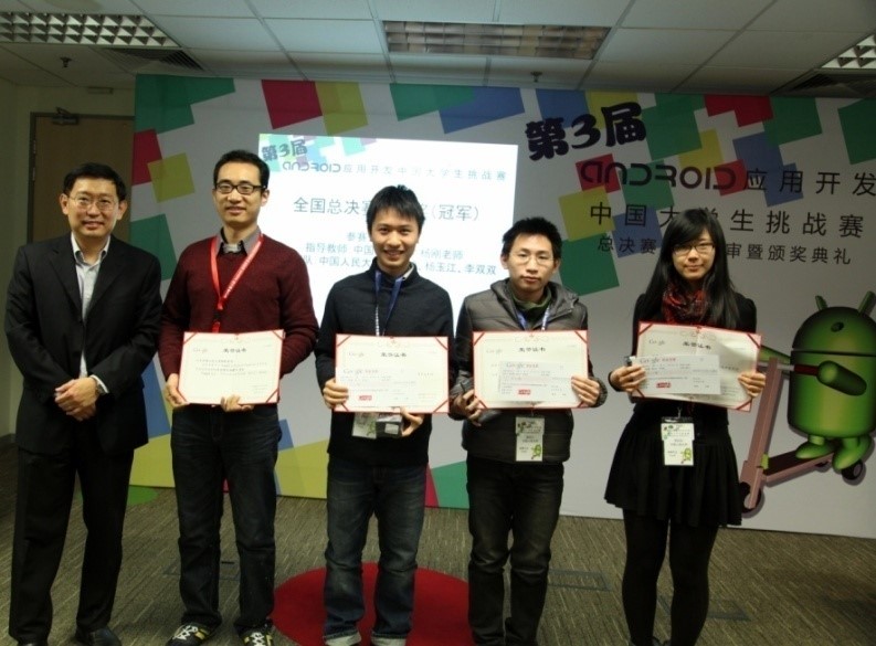 2012年信息学子荣获“谷歌Android开发中国大学生挑战赛”唯一的全国一等奖