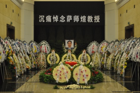 2010年7月19日上午,萨师煊教授遗体告别仪式在北京八宝山殡仪馆东礼堂举行。中国人民大学党委书记程天权,副校长陈一兵,原副校长杨德福、杜厚文、李昭公;原中国人民银行副行长苏宁;中科院院士、中科院软件所研究员林惠民,中国工程院院士、北京大学教授何新贵,以及国内外专家学者和人民大学师生、校友、外地院校代表等约300人前来参加告别仪式,其情感人至深。